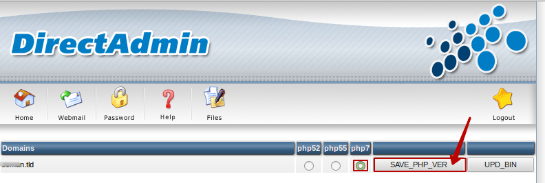 Дальше для нашего домена ставим галочку напротив желаемой версии PHP и нажимаем SAVE_PHP_VER.